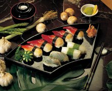 寿司是在饭里放醋做主材料的日本料理,味道鲜美,色彩非常鲜明。制作时,把新鲜的